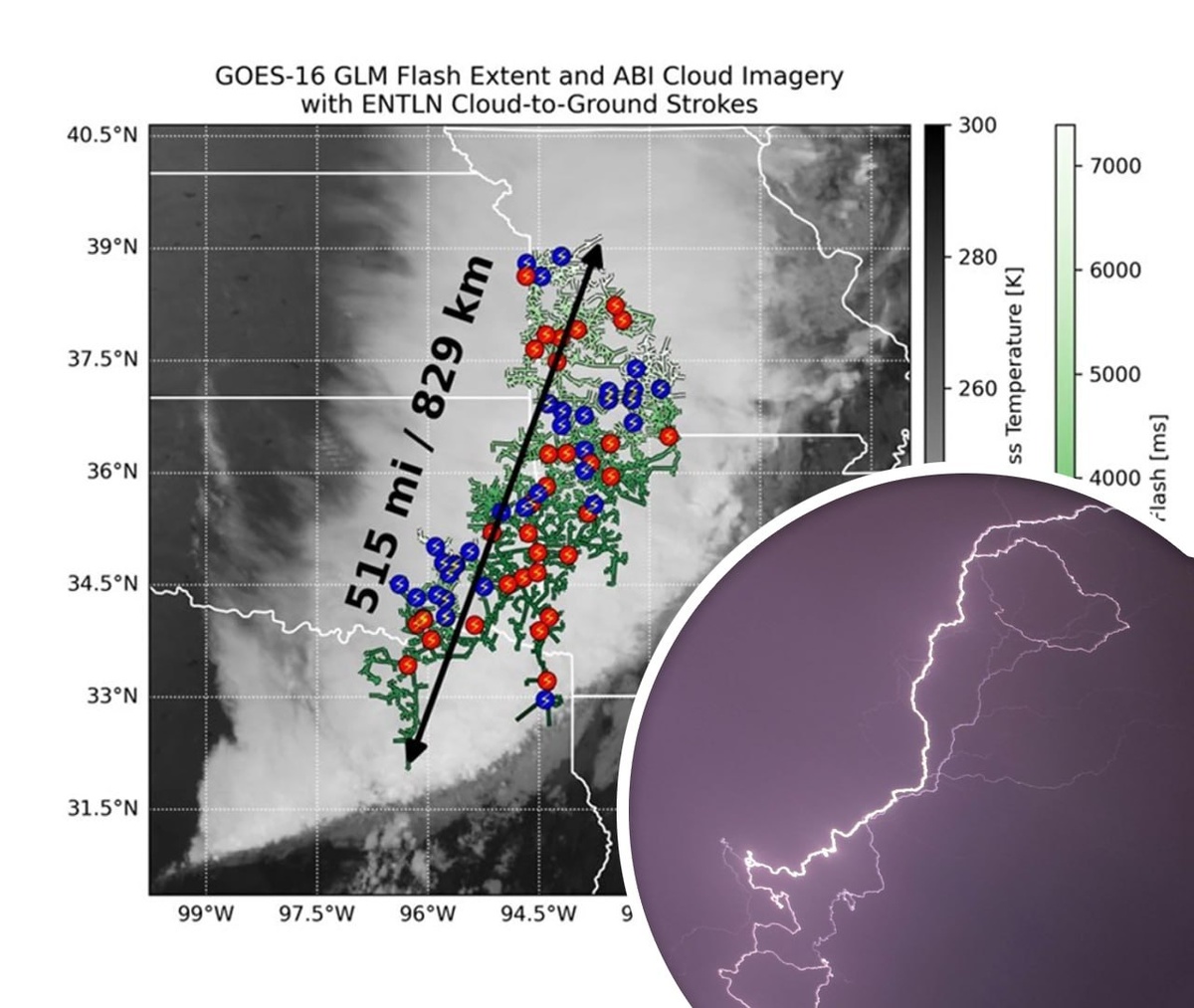 В США зафиксировали МЕГАМОЛНИЮ. Разряд длиной 829 км протянулся от Восточного Техаса до Канзас-Сити, что стало новым мировым рекордом. Размеры сопоставимы с дорогой между Венецией и Парижем — на машине это 8-9 ч езды.