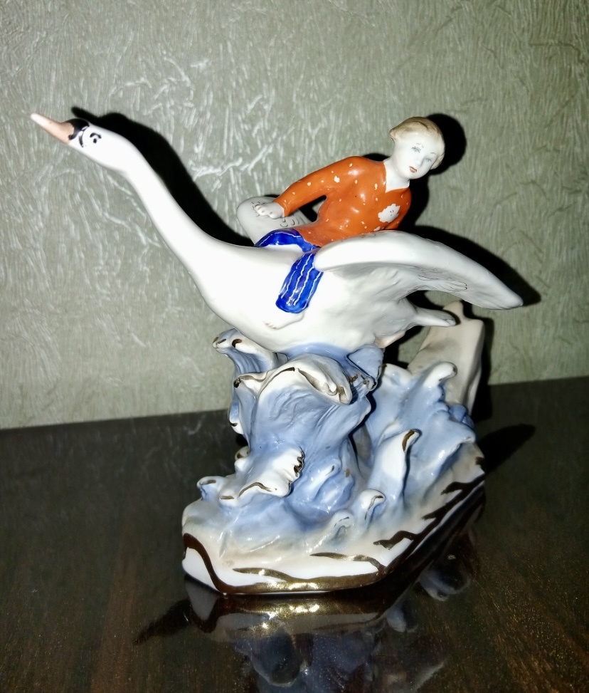 У Екатерины - прислужники Бабы-Яги похитили братца Иванушку. Эта композиция из русской народной сказки «Гуси-лебеди», Дулево, скульптор П.М. Кожин.