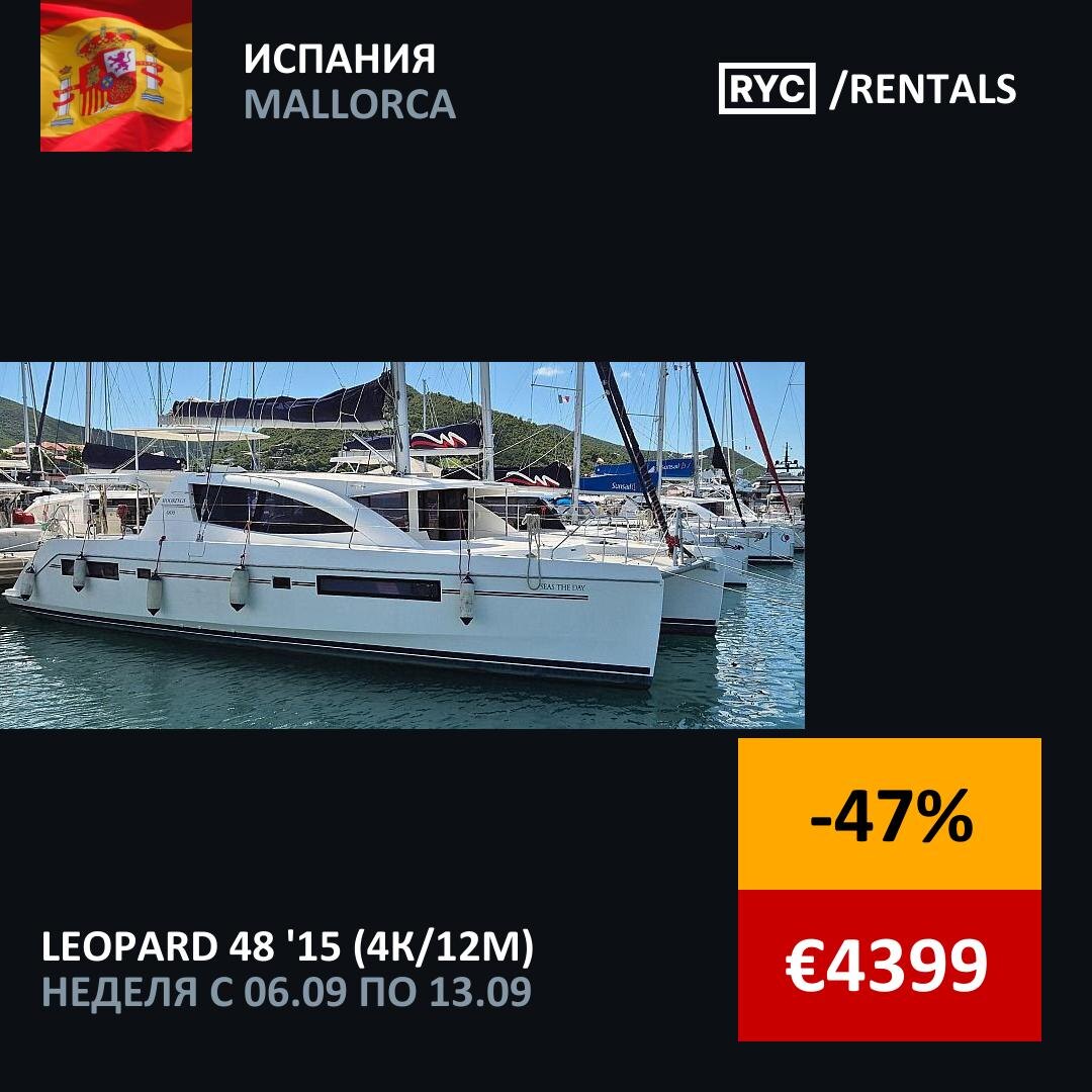 ИСПАНИЯ. ОКТЯБРЬ-НОЯБРЬ. КАТАМАРАНЫ И ЯХТЫ. СКИДКИ ДО 47%. 1 Leopard 48 '15 (4К/12М) Неделя с 06.09 → 🇪🇸 Mallorca €4399(-47%) 🔥🔥🔥🔥🔥 2 Bavaria 51 Cruiser '19 (5К/10М) Неделя с 06.09 → 🇪🇸 Mallorca €3478(-38%) 🔥🔥🔥🔥 3 Lagoon 40 '20 (4К/11М) Неделя с 08.09 → 🇪🇸 Ibiza €3894(-38%) 🔥🔥🔥🔥 4 Oceanis 41.1 '20 (3К/8М) Неделя с 06.09 → 🇪🇸 Mallorca €2821(-38%) 🔥🔥🔥🔥 5 Oceanis 38 '14 (3К/8М) Неделя с 04.10 → 🇪🇸 Mallorca €2244(-33%) 🔥🔥🔥 6 Lagoon 42 '23 (4К/10М) Неделя с 06.09 → 🇪🇸 Mallorca €6650(-30%) 🔥🔥🔥 7 Solaris 47 '22 (3К/8М) Неделя с 06.09 → 🇪🇸 Mallorca €6408(-28%) 🔥🔥🔥 8 Lagoon 421 '16 (3К/9М) Неделя с 04.10 → 🇪🇸 Ibiza €3638(-33%) 🔥🔥🔥 9 Excess 11 '23 (4К/11М) Неделя с 13.09 → 🇪🇸 Ibiza €4240(-28%) 🔥🔥🔥 10 Lagoon 52F '15 (6К/14М) Неделя с 06.09 → 🇪🇸 Ibiza €9720(-28%) 🔥🔥🔥 👉 www.rycsailing.com/rentals ❤️ Подписаться в телеграме: https://t.me/+a7etwdJbg0w3MDk6 💳 В РФ оплата в рублях по курсу ЦБ РФ на день оплаты + 6% безналичным способо