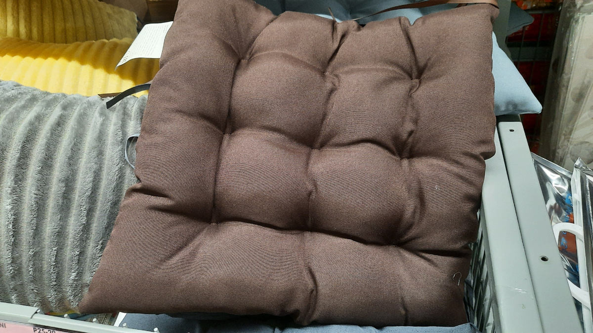 Подушка Лидер на стул с завязками размер 36×36 цена 269 рублей. Состав габардин, полиэфирное волокно. Страна Россия.