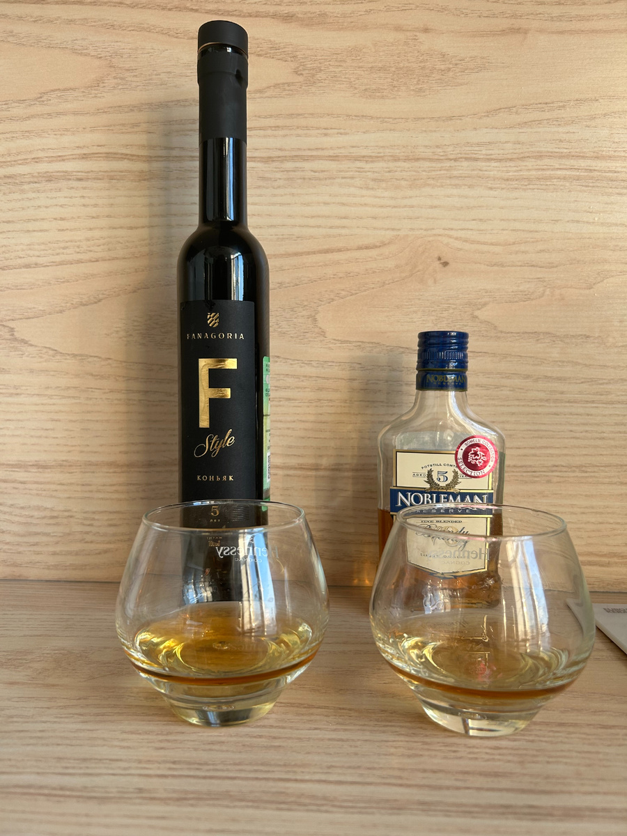 Как и обещал сравниваю Отечественный Фанагорийский F-style 5 лет с юаровским бренди Nobleman reserve так же пятилетним. Поводом к этой битве стало обнаружение мною небольших лимонадных мотивов у Nobleman, вот и решил сравнить с производителем у которого "кислая роза" стала фирменным стилем. Об участниках сравнения я уже писал по отдельности, кому интересно смотрите подробности. Для теста привлек мои любимые шарики от Хенесси. Ну и как всегда результаты сравнения в таблице с небольшими ремарками. Выводы каждый сделает самостоятельно, но на мой совсем не экспертный взгляд, испорченный тезисом CognacOnlyFrеnch, в этой паре водкозаменителей Nobleman reserve 5 лет выглядит предпочтительнее, для меня он был вкуснее, да и продается дешевле, правда не везде. Enjoy and be happy. Now everyone knows what brandy is. Есть желание прочесть иные мои повествования о коньяке и не только? Тогда мышью тыц и подписываемся. Не возбраняется дискуссия и лайки в поддержку.