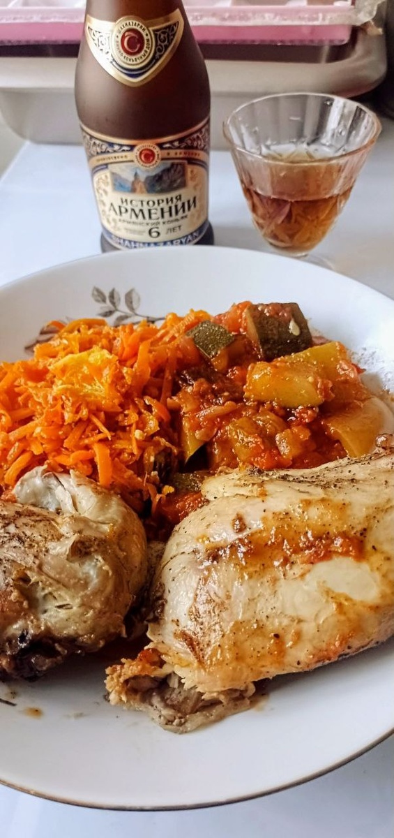 Запечённый кролик с Абхазской аджикой и овощами. Ингредиенты: Кролик -1200гр Аджика Абхазская - 50гр Чесночное 🧄 масло- 10мг Баклажан 🍆- 500гр Кабачки-300гр Лечо п.ф- 150мг Морковь 🥕- 100гр Чесночное масло - 10мг Технология приготовления: Кролика разделить на части. Замариновав в Аджике предварительно посолив его. Запекать в духовке при 150 градусов (4 часа) . Подготовить овощи. Баклажаны нарезать крупно, кабачки 🥒 сегментами Отдельно обжарить баклажаны, затем кабачки, морковь нашинковать соломкой . Добавить Лечо. не много чесночного 🧄 масла. Овощи про тушить. Подавать и оформлять блюдо Кролика овощами. Приятного аппетита 😋 🙏❤️👍 #авторскаякухня@chefoleg #рецептыотшефа@chefoleg #кроликзапеченныйваджике@chefoleg