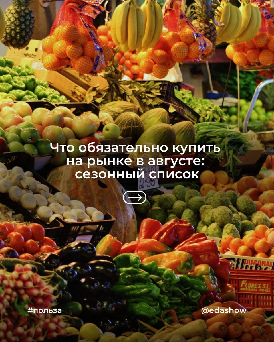 Сезон в разгаре, и сейчас самое время покупать продукты, наполненные витаминами и ярким вкусом. Мы составили короткий, но полезный список того, что точно стоит взять, чтобы добавить в свои блюда 👇 Из фруктов — на первом месте, конечно, персики и нектарины. В августе они сочные, ароматные, сладкие, и в них — кладезь витаминов С и А. За ними — сливы, абрикосы, арбузы и дыни. Последние являются отличными помощниками в жару: хорошо утоляют жажду, богаты калием и поддерживают водный баланс. Из овощей не пройдите мимо томатов — августовские особенно мясистые и вкусные. Баклажаны, кабачки, кукуруза, сладкий перец, огурцы и молодая морковь — всё это не только вкусно, но и очень полезно. Например, баклажаны поддерживают сердце, а морковь улучшает зрение. Зелень в августе — на пике: укроп, петрушка, базилик, кинза и шпинат. Добавляйте их в салаты, супы и даже напитки — свежая зелень насыщает организм железом, витаминами группы B и антиоксидантами. Август — время собирать урожай и запасаться вит