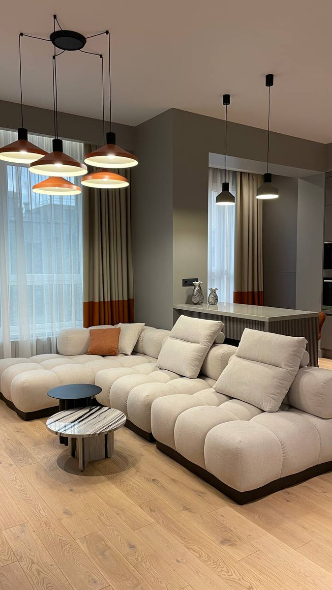 Дизайнер Елена Покрова создала невероятный интерьер, где сердцем гостиной стал наш модульный диван «Kioto».