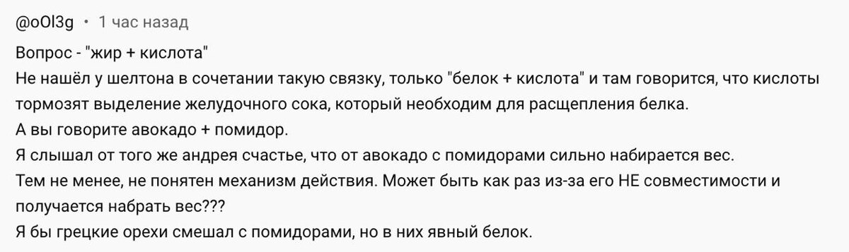 Вот типичный пример того, как люди десятилетиями буксуют. Не двигаются. Не развиваются. Не становятся сильнее. Они цитируют умерших теоретиков (или доведших себя до полу смерти), спорят про "жир + кислота", и удивляются, почему тело не растёт, энергия падает и мышцы не появляются. Если авокадо с помидором тебя "толстит" - дело не в их "несовместимости". Дело в том, что твой метаболизм не переваривает даже настоящую еду. 📌 Хочешь выйти из этого? - Я показываю, как. Пиши: "готов"