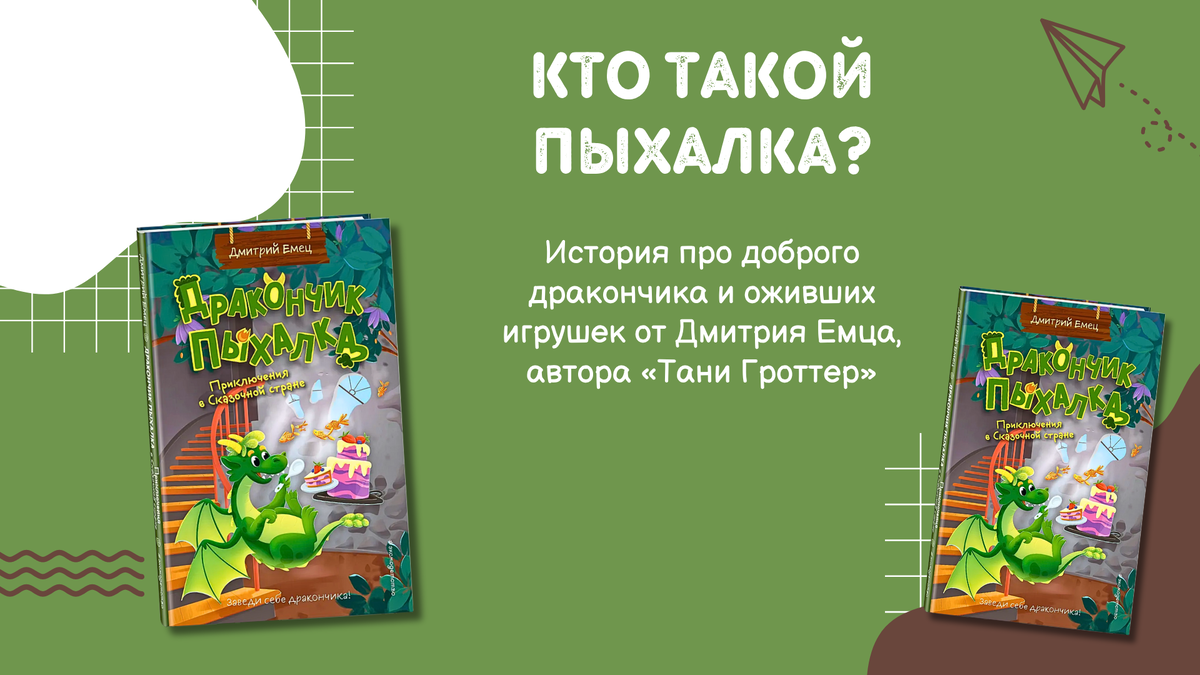Каникулы — время свободы, приключений и, конечно же, хороших книг! Именно летом у детей появляется больше пространства для фантазии, и так важно, чтобы рядом оказались истории, которые наполнят сердце теплом, а голову — новыми идеями. Одна из таких историй — серия книг Дмитрия Емца про обаятельного героя с говорящим именем Пыхалка. Пыхалка — самый настоящий дракончик, но не грозный, как в сказках, а добрый, забавный и невероятно обаятельный. Его история началась… в бабушкином сундуке. Именно там его случайно обнаружила девочка Маша, а с ней и целая команда игрушек — кукла Оля, пупс Куклаваня, зайчата Синеус и Трувор и кошка Дуся. С этого момента — никакой скуки! Вместо этого — увлекательные события, чудеса, тайны и, конечно же, дружба, без которой не обойтись ни в одной сказке. Узнать о книгах больше — OZON | Читай-город | Book24 Книги о Пыхалке — это настоящий мостик между волшебным и реальным миром, между современными детьми и традиционными персонажами русских народных сказок. А еще