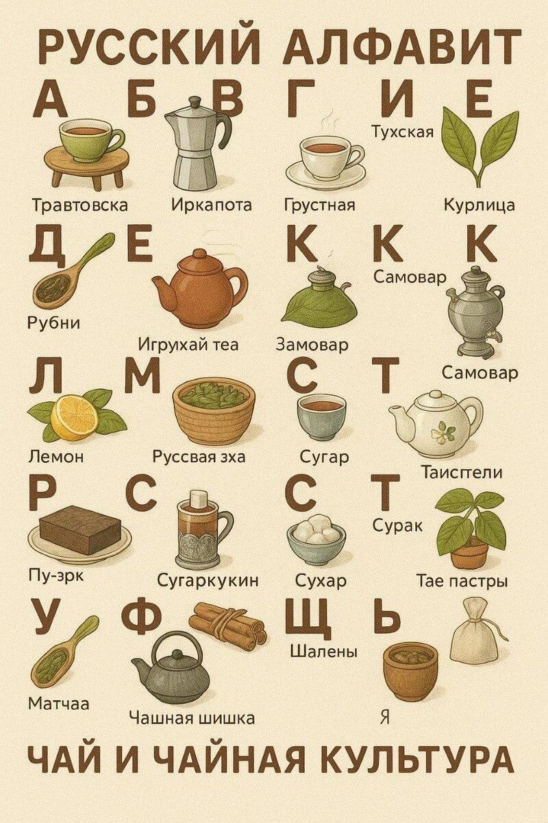 Заварю иркапоту руссвой зхи из курлицы, и сухара (и сугара тоже) в травтовску не забуду положить. Канал "Путевые заметки Чайного Клоуна" присоединился к флешмобу и попросил ИИ сделать чайную азбуку. 🧂 @saltmagazine