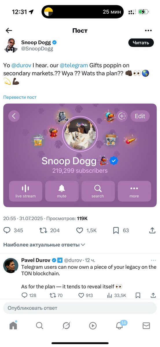 Снуп Дог столкнулся с крипто капитализмом, и сразу же состоялась коммуникация — два миллиардера просто пообщались в курилке Твиттере
