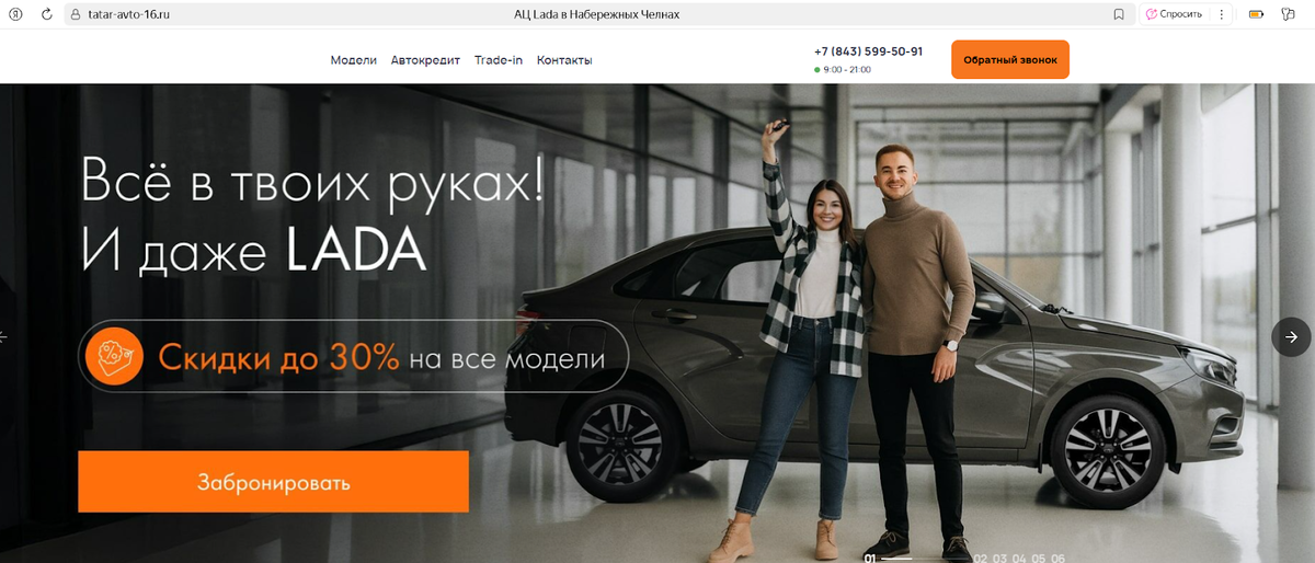 АЦ Lada — это автосалон в Набережных Челнах. Пока его нет на картах. Возможно, дилерский центр только готовится к открытию. Или же это просто лендинг для сбора заявок, где реальный продавец скрывается по непонятным причинам. В автосалоне на переулке Юбилейный 4а можно купить новый автомобиль Lada. Дилер пытается выдать себя за официальный монобрендовый салон. Однако это не так, перед нами вовсе обычный лендинг для сбора заявок. По указанному адресу на картах в принципе нет ни одного автоцентра. Зато в рекламе регулярно попадаются данные координаты, меняется только название салона. Например, недавно мы писали о НЧ Моторс, который попал в наш черный список. Также этот адрес указан на сайте дилера Старт Авто, который тоже есть в нашем черном списке. Владельцем автоцентра Lada в Набережных Челнах является ООО «СтартАвто» (ИНН 7708426254). Это же юридическое лицо указано на сайте НЧ Моторс. Есть признаки подставной фирмы: например, до 2024 года компания занималась строительством и называлас