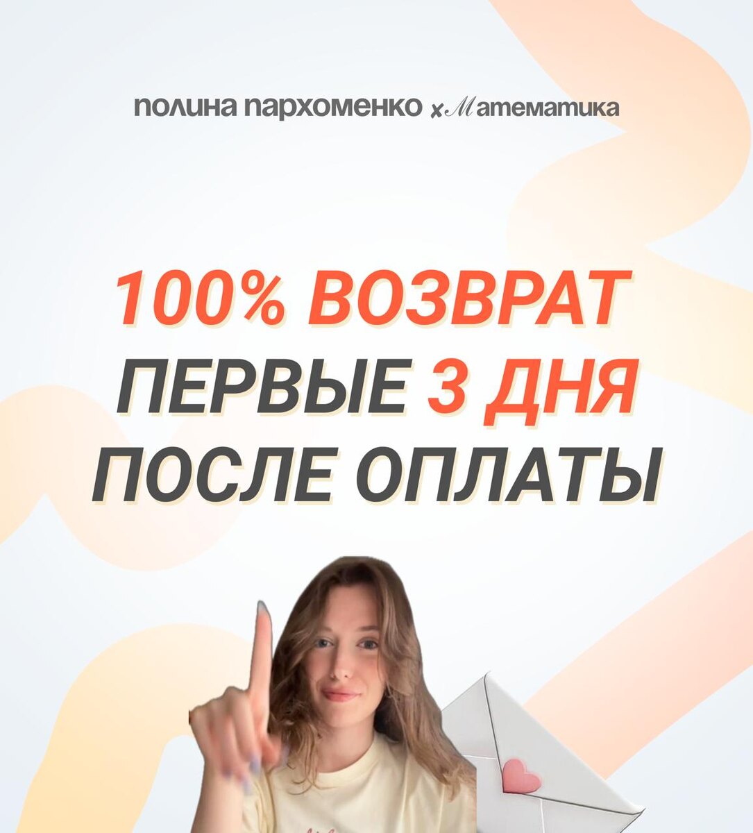 100% ВОЗВРАТ СРЕДСТВ НА КУРСАХ 🤩 я понимаю, как важно найти «своё» обучение и «своего» преподавателя, поэтому на курсе у вас будет возможность 100% возврата средств, если что-то пойдет не так!❤️🩹 БЕЗ ЗАЯВЛЕНИЙ мы заботимся о качестве курса и уверены в нём. попробуйте обучаться у нас — и сами всё поймете! 👀 записывайся на годовой курс-2026 и начинай готовиться у нас, даже если ты с НУЛЯ 🙂пиши «ГОД» (нажми, копируется) в лс @poleinehelp
