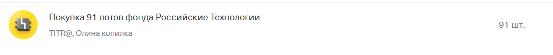 Лена перевела в проект 3300 руб. Приобрели облигации ГТЛК 3 шт и на оставшиеся деньги 25 паев денежного рынка