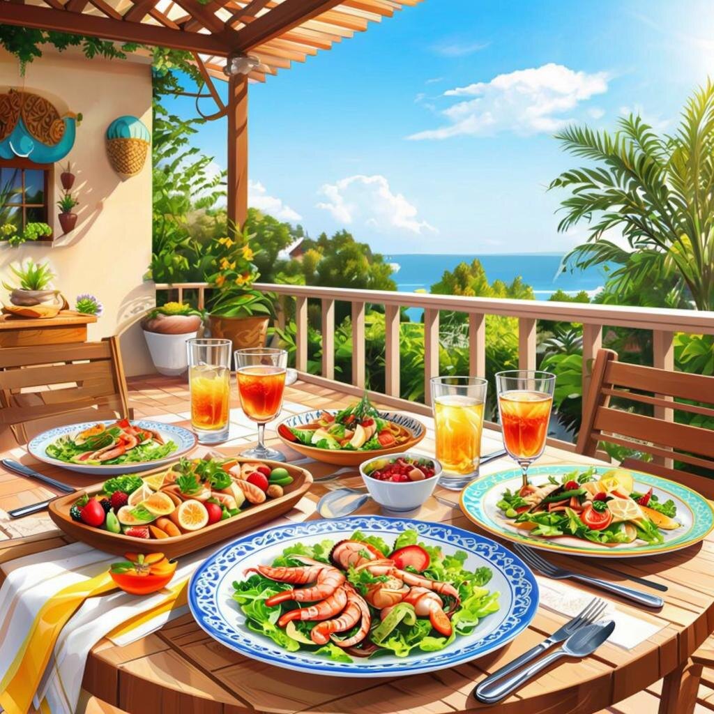 Летний ужин при температуре +35 градусов Жаркий летний вечер — идеальное время попробовать легкие блюда, которые освежают и заряжают энергией. Когда температура поднимается до отметки +35°C, важно выбрать продукты, богатые влагой и полезными веществами, но не перегружающие организм тяжелой пищей. Сегодня мы предлагаем вам подборку блюд, идеально подходящих для жаркого вечера. Холодник: холодный суп-помощник Классический русский холодник — один из лучших вариантов прохладительного ужина. Этот легкий овощной суп готовят из свежих огурцов, редиса, зелени и вареного яйца, заправляя кефиром или сметаной. Такой рецепт помогает организму поддерживать водно-солевой баланс и быстро утоляет жажду. Попробуйте добавить немного мяты или укропа, чтобы придать блюду свежесть и аромат. Ингредиенты: - Огурец свежий — 2 шт.; - Редис красный — 8–10 шт.; - Яйцо куриное отваренное вкрутую — 2 шт.; - Зелень петрушки и укроп — по вкусу; - Кефир нежирный — 500 мл; - Вода минеральная газированная — 2 ст.л.;
