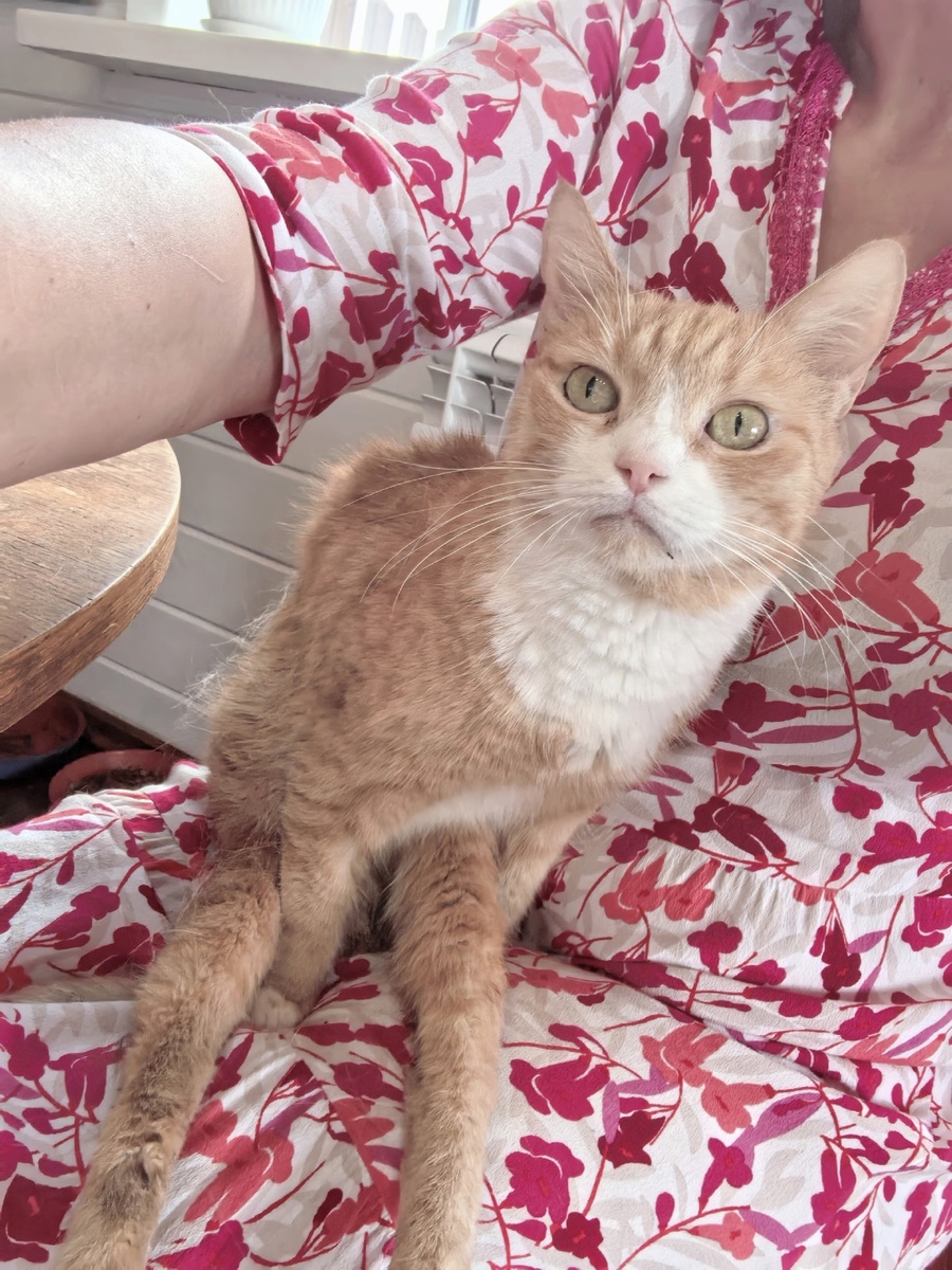 Даёт хозяйке гладиться, разговаривает с ней, рассказывает о своих горестях — о том, что его Василий побил. Ест замечательно.