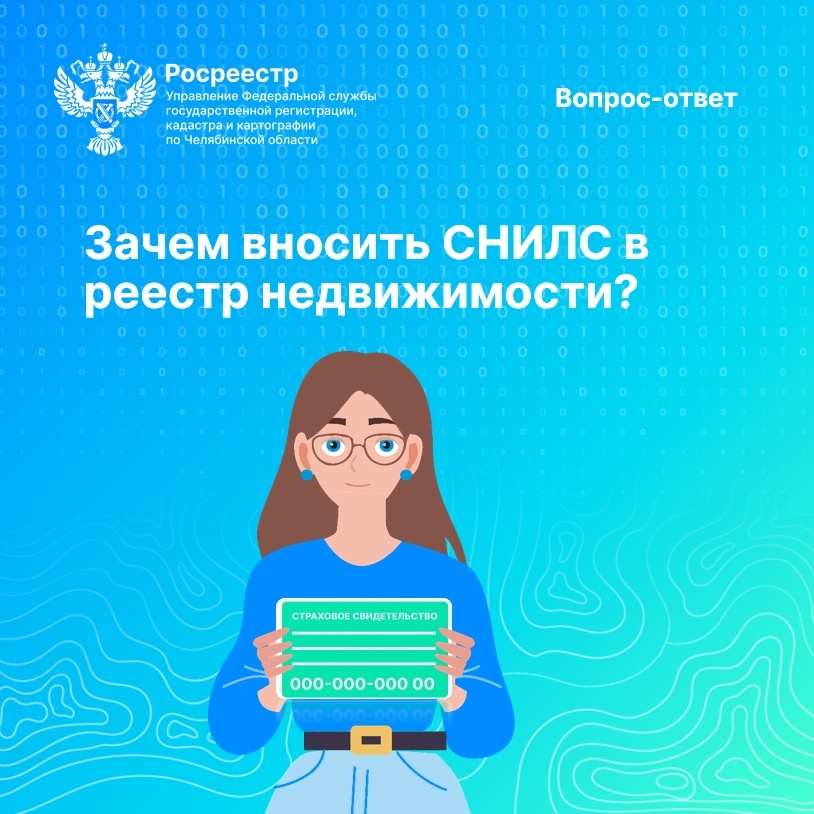 Управление Росреестра по Челябинской области продолжает отвечать на актуальные вопросы южноуральцев. В рамках рубрики «Вопрос-ответ» расскажем, что представляет собой СНИЛС и зачем он нужен при обращении за государственными услугами Росреестра. СНИЛС — это уникальный номер, который присваивается гражданину один раз и остаётся неизменным на протяжении всей жизни. В отличие от других персональных данных, таких как паспортные данные или место регистрации, страховой номер индивидуального лицевого счёта постоянен, даже если у человека меняются фамилия, имя или отчество. Использование СНИЛС при обращении за государственными услугами Росреестра помогает быстро и точно идентифицировать гражданина. В некоторых случаях при проведении правовой экспертизы документов, поступивших на кадастровый учёт или регистрацию прав, может потребоваться дополнительная информация от органов власти. Эти сведения поступают в Росреестр через межведомственное электронное взаимодействие, но без СНИЛС заявителя получ
