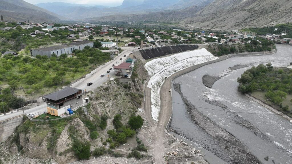 В Шамильском районе продолжается реконструкция участка автомобильной дороги Гунибское шоссе – Вантляшевский перевал на отрезке с 33 по 34 километр. Работы ведутся в рамках аварийно-восстановительных мероприятий и направлены на восстановление транспортно-эксплуатационных характеристик дороги, утраченных в результате стихийного бедствия — интенсивного размыва и обрушения склона, на котором проложен участок. Проектом предусмотрено устройство нового земляного полотна и дорожной одежды с укладкой двухслойного асфальтобетонного покрытия. Также выполняются работы по обустройству примыканий, водоотводных лотков и подпорных стен для укрепления участка. Для повышения уровня безопасности предусмотрен комплекс мер: установка дорожных знаков, обустройство тротуаров и перил, монтаж бетонных ограждений типа ОПТ, наружное освещение и нанесение дорожной разметки. Впервые в Дагестане применяется технология укрепления откосов с использованием геоматов, геосетки и биоматов, что позволяет не только стабили