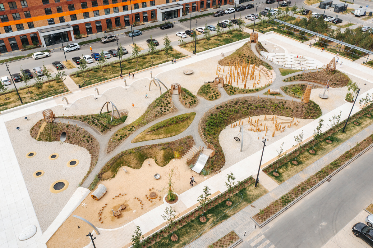 В наше время гаджетов, социальных сетей и нейросетей очень важно создавать детям условия, в которых они смогут развивать мышление, фантазию, учиться выстраивать коммуникацию, в игре проходить разные сценарии взаимодействия и примерять на себя разные роли. Все это можно сделать с помощью дизайна. В данном посте речь пойдет о дизайне среды. Хочу продемонстрировать Вам уникальное многосценарное игровое пространство, выполненное в рамках благоустройства в жилом квартале "Люблинский парк" в Москве. Пространство реализовано в 2021 году. Игровой хаб «Остров» продуман так, что пространство одновременно не видно целиком. По мере движения с каждой точки открываются новые пейзажи, элементы и тропы, которые интересно исследовать. Рельеф «Острова» активно вовлечен в игровые сценарии и задействован в работе оборудования — в первую очередь, в горках и тарзанках (весь рельеф - это геопластика, искусственно созданный рельеф). Ландшафт становится главным живым героем места, который своей формой объедин