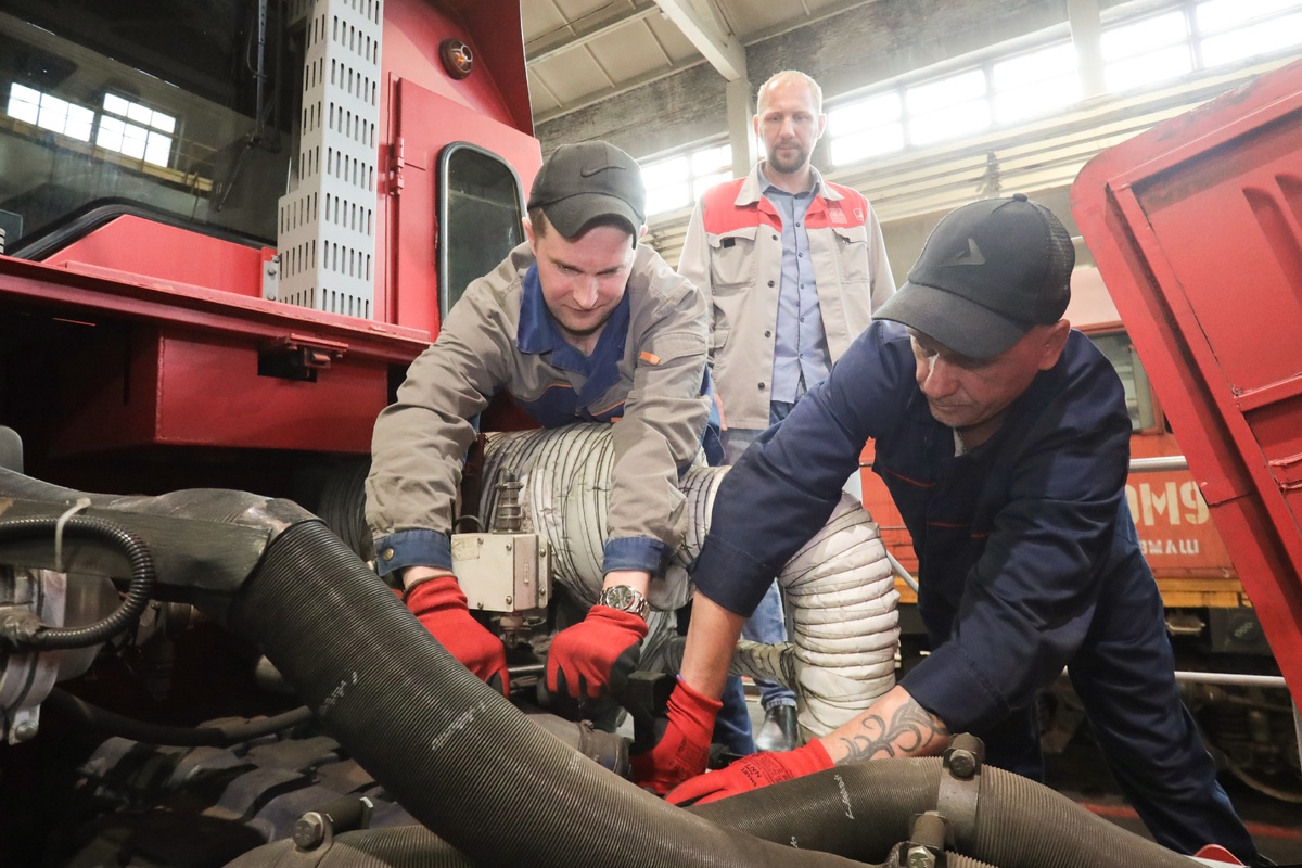– Работаем одной командой, решаем общие производственные вопросы. И если какое-то звено отключить, может нарушиться сам техпроцесс, – говорит и.о. заместителя начальника цеха 21 Андрей Кошелев. – Коллектив хороший, дружный, работы хватает. Есть техника новая, есть с солидным стажем эксплуатации, которая, соответственно, требует более пристального внимания, в том числе внепланового осмотра и ремонта. Технику надо поддерживать в исправном состоянии. Предусмотрено обязательное прохождение всех регламентов выезда на пути общего пользования, прежде всего, на промзону № 2 и железнодорожную станцию «Северодвинск». Соответственно подвижной состав должен иметь на это допуск, который мы получаем по результатам проверок Архангельского отделения Северной железной дороги.