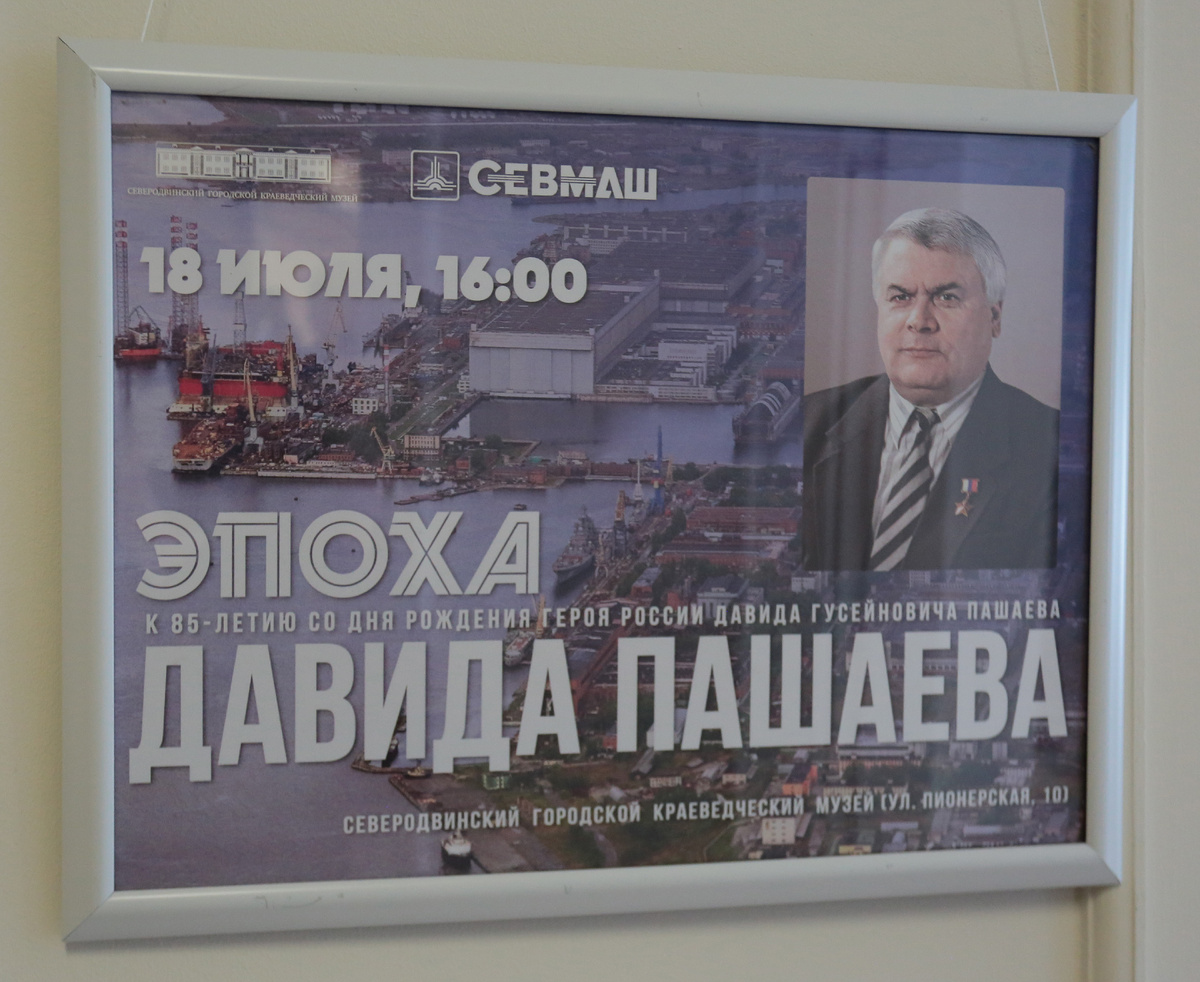В городском краеведческом музее открыта фотовыставка «Эпоха Давида Пашаева», посвящённая 85-летию со дня рождения известного кораблестроителя, генерального директора Севмаша в 1988-2004 годах. На вечере памяти присутствовали руководители предприятия и города, друзья и сослуживцы Давида Гусейновича. Говорили о нём – Герое России, почётном гражданине Северодвинска, личности масштабной, яркой, одарённой и в то же время простой, доступной, притягательной. Ведущие Любовь Карпова (городской музей) и Александр Мазур (музей Севмаша) рассказали об основных вехах жизненного пути Давида Пашаева, которые сопровождались фотографиями, спроецированными на большой экран. Более сорока лет Давид Гусейнович отдал заводу, из них шестнадцать – руководил Севмашем. Сначала это были годы расцвета атомного подводного кораблестроения, а затем наступило время тяжелейших испытаний. Талантливый инженер, прекрасный организатор производства, патриот своей страны, Давид Пашаев стал символом целой эпохи – времени, ко