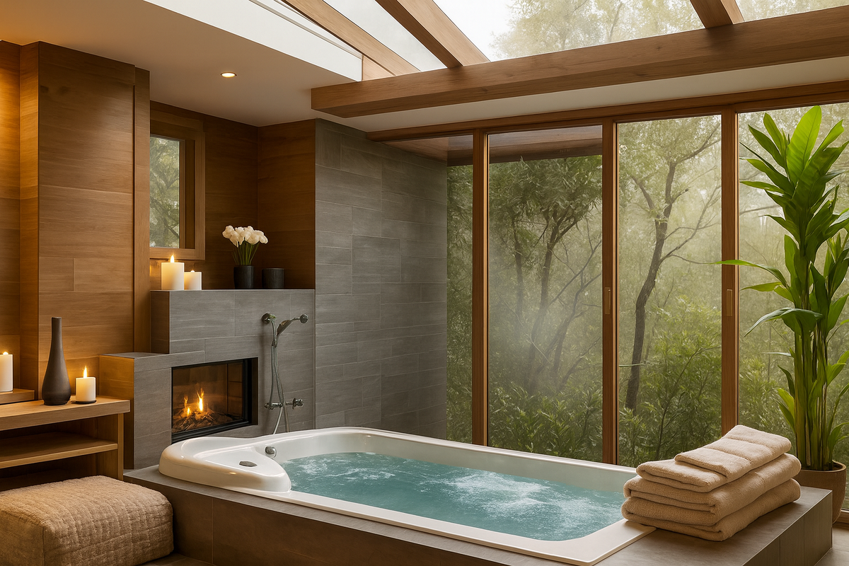 Устав от городской суеты, многие все чаще ищут способы расслабиться, не выходя из дома. Отсюда и растущий интерес к формату спа-ванны дома, когда обычная ванная превращается в личный мини-салон с теплым паром, гидромассажем и атмосферой уюта. Такой подход — это не роскошь, а, в первую очередь, забота о себе. Особенно актуально в эпоху wellness-трендов, когда хочется не просто принять душ, а по-настоящему перезагрузиться. Рассказываем, как устроить полноценную спа-зону в собственной ванной комнате, даже если пространство ограничено. Домашняя спа-ванна — это не обязательно джакузи с подсветкой и музыкой. Главное, продумать атмосферу, в которой можно расслабиться физически и ментально. В такой ванной можно сочетать гидротерапию, ароматерапию, тепловое воздействие и расслабляющие ритуалы. Плюсы: И все это — в любое время, без записи и необходимости выходить из дома. Если говорить о максимальном эффекте, то гидромассажные ванны — это отличное вложение. Встроенные форсунки создают водяные и
