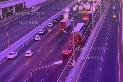 В Москве два грузовика на скорости протаранили пробку и попали на видео