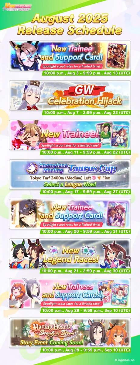 Расписание событий и баннеров Umamusume: Pretty Derby на август