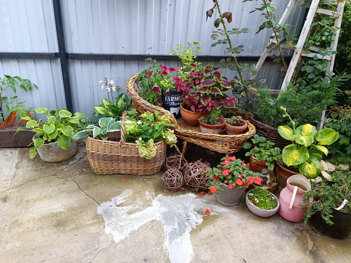 Если любая женщина может из ничего сделать салат, скандал и шляпку, то последний пункт у меня точно заменён на садовые кашпо🤣 Ей-богу, их я люблю придумывать из хлама, пожалуй, больше всего, и каждый сезон создаю сразу несколько. Места же мало, цветов много, а необычные кашпо становятся еще и любопытным акцентом. Так что сегодня решила прогуляться по саду и показать, что и как я приспосабливаю под растения из того, что попадает под руку. Недавно я показывала на канале быстро сделанный контейнерный садик, в котором поселились сразу несколько импровизированных кашпо из того, что было🤭 Это и две спасённые с Клондайка и приведённые в порядок корзины, в которые растения поставлены в технических чёрных горшках. На зиму их можно будет отправить в прикоп, а корзины убрать до весны на хранение: так они останутся целее. Тут же поселилось случайное кашпо из бетона, хоста будет зимовать в нем прямо тут же, на площадке, никаких проблем с зимовкой хост в горшках по месте я не наблюдала как мини