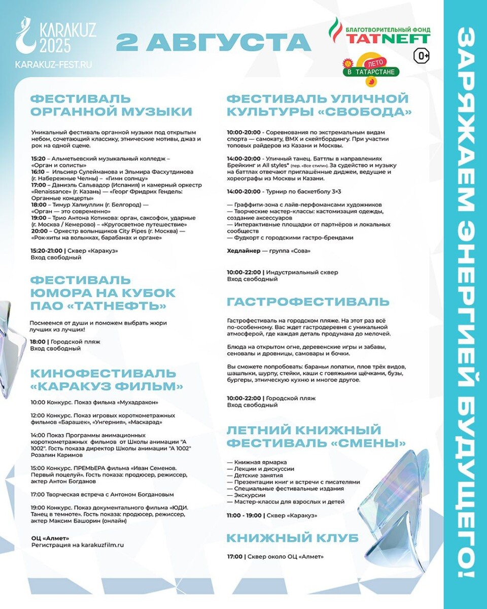 «Гимн солнцу» - так называется новая программа, которую подготовила органистка Органного зала, заслуженная артистка РТ Ильсеяр Сулейманова для выступления на фестивале Каrakuz (6+). Это будет музыкально-поэтическое путешествие от времен Вивальди до Пьяццоллы, от классики до татарского фольклора в авторских переложениях. Орган прозвучит в сопровождении поэтических строк в исполнении лектора-музыковеда Эльмиры Фасхутдиновой. Челнинки примут участие в празднике органной музыки под открытым небом, сочетающем классику, этнические мотивы, джаз и рок. На одной сцене выступят Даниэль Сальвадор (Испания), камерный ансамбль «Renaissance» (Казань), Тимур Халиуллин (Белгород), трио Антона Котикова: орган, саксофон и ударные (Москва), оркестр волынщиков City Pipes (Москва). Начало концертной программы завтра, 2 августа, в сквере «Каrakuz» - в 15:20. Вход свободный. Напомним, в Альметьевске проходит юбилейный, пятый этнокультурный фестиваль «Каrakuz»». Каждый день на тематических площадках концерты,