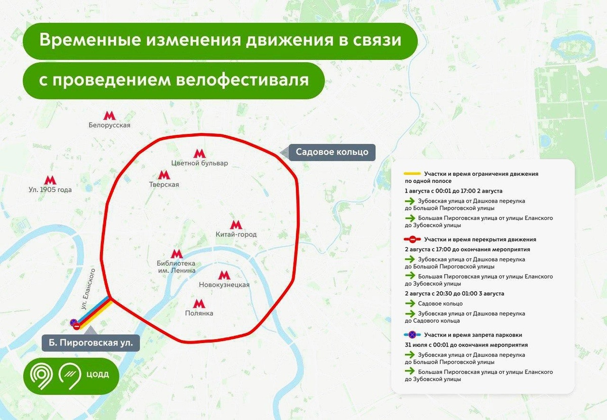 ‼ Из-за проведения Московского ночного велофестиваля 2 и 3 августа движение по Садовому кольцу в обоих направлениях будет временно