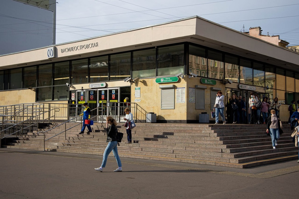 Станцию метро «Василеостровская» закроют на вход 9, 10, 16 и 17 августа. Выход пассажиров при этом останется. Изменение связано с капитальным ремонтом стилобата. Фото: Дарья Каменская/Город+ Подпишись на Город+