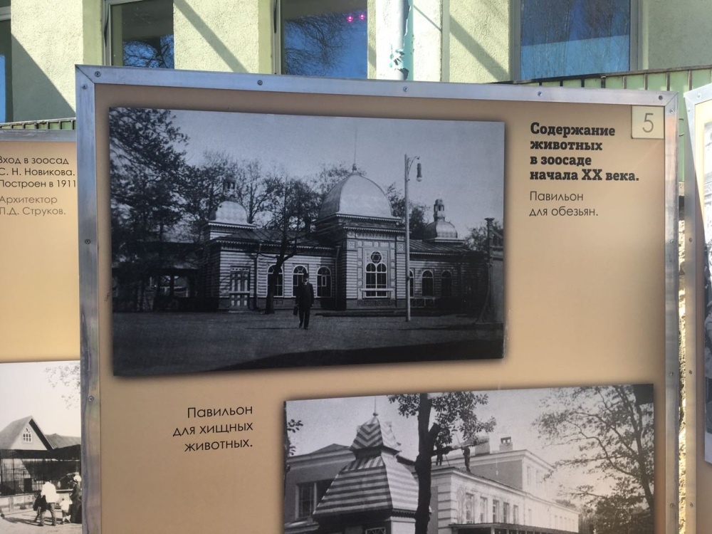В Синагогу в крайнем изумлении обратились члены еврейской общины, посетившие Ленинградский зоопарк. – Были с детьми, обратили внимание на стенд и до сих пор в шоке. Вот, посмотрите! На фото – здание, очень похожее на синагогу: об этом, на первый взгляд, свидетельствует и экстерьер здания, и декор – шестиконечные звезды на оконных витражах. Надпись гласит: «Павильон для обезьян». Эпатаж? Розыгрыш? Нехорошая шутка? Трудно заподозрить в таком уважаемое учреждение – Ленинградский зоопарк! Но должно же быть какое-то объяснение? И сотрудники Синагоги написали в зоопарк письмо с просьбой прояснить ситуацию. На следующий же день позвонила Елена Борисовна Попова – библиотекарь научного отдела и рассказала следующее: – Это не то, что вы подумали! На стенде представлены реально существовавшие павильоны. Зоопарк был основан более 150 лет назад, в 1865 году. Он существовал как частный зверинец, переходя из рук в руки. Второй его владелец, Эрнест Рост, затеял масштабное строительство. По его заказу