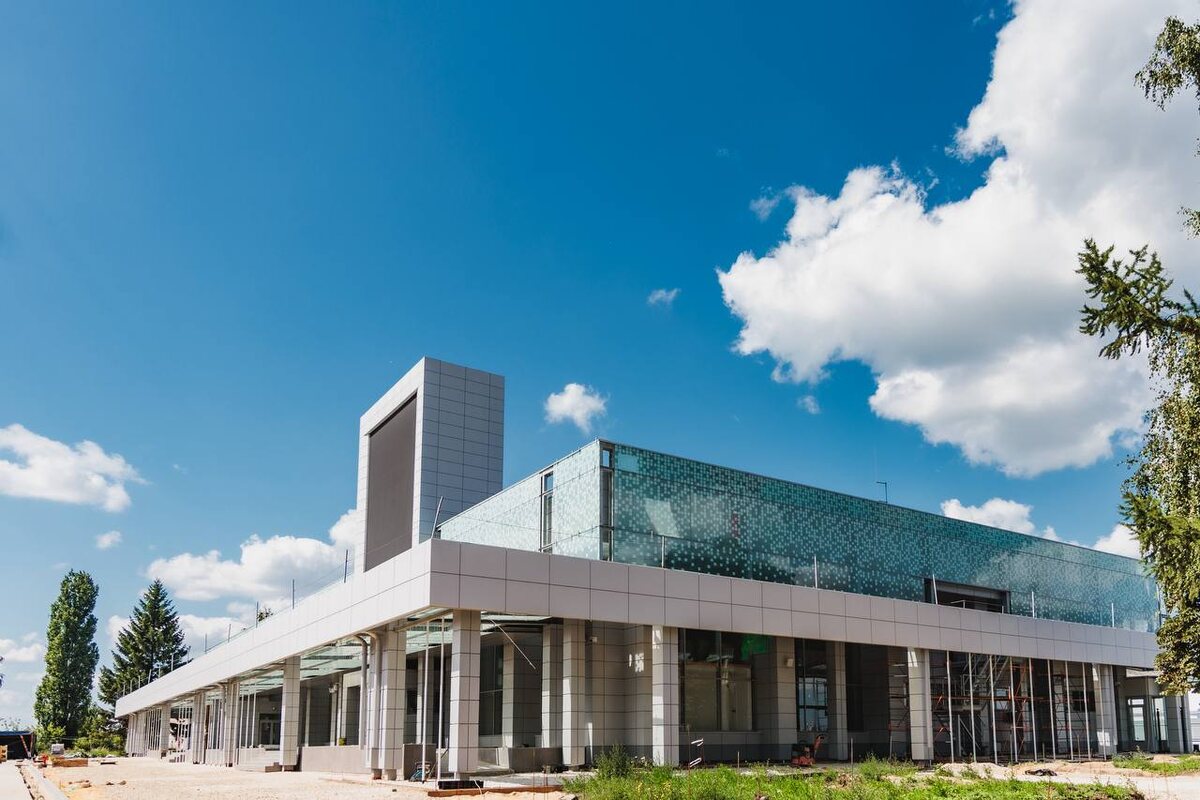 На фото — современная архитектурная визитка региона Элегантный фасад, строгая геометрия, свет и воздух — это всё о нашем аэропорте. Уже завершают обновление фасада, монтируют подсветку и «липовую рощу», поставили новое табло с расписанием. Скоро начнётся модернизация топливного комплекса, уже закупается техника. Аэропорт готовят к статусу международного. Когда полёты вернутся, встречать пассажиров будут на новом уровне 📈 😀😃😄😁 - ваш путеводитель досуга