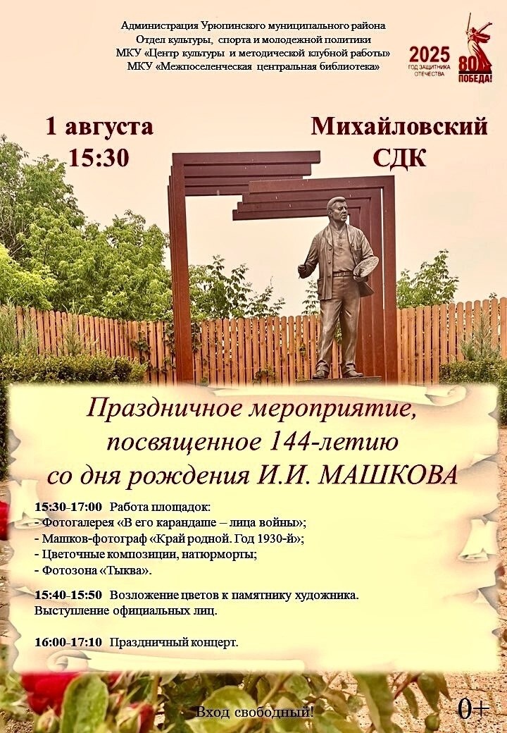 А у наших добрых соседей в станице Михайловской Урюпинского района важное событие💯 Не пропустите мероприятие, посвященное 144 летию со дня рождения выдающегося художника Ильи Машкова🎨 #художник #ИльяМашков