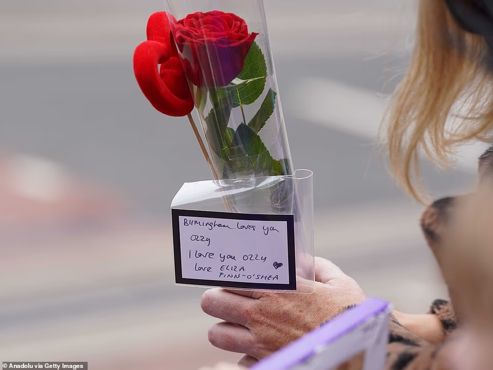 Оззи Осборн был похоронен на территории его семейного особняка в графстве Бакингемшир, Англия, после частной закрытой семейной церемонии. Похороны состоялись 31 июля на территории его семейного поместья недалеко от Джеррардс-Кросс. Осборна похоронили, как он и просил, рядом с озером на их обширной территории площадью 250 акров в сельской местности Англии. По данным Daily Mail, на берегу озера была установлена огромная цветочная композиция в память о покойной рок-легенде, на которой заглавными буквами было написано: «Ozzy f...ing Osbourne" (Оззи, черт тебя подери, Осборн - вариантов перевода много - вот еще один "Оззи чертов Осборн" - тоже подходит). . Издание также опубликовало фотографии нескольких музыкантов, в том числе Кори Тейлора из Slipknot, давнего гитариста Оззи Осборна Закка Уайлда, Роба Зомби и Мэрилина Мэнсона, перед тем как все отправились на службу. The Sun ранее сообщала, что на мероприятии также должны были присутствовать Элтон Джон, Yungblud, Джеймс Хэтфилд из Metalli