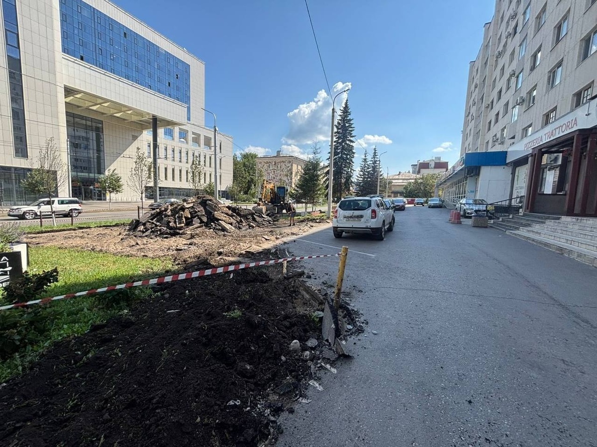 В Уфе начали ремонтировать тротуар на улице Карла Маркса