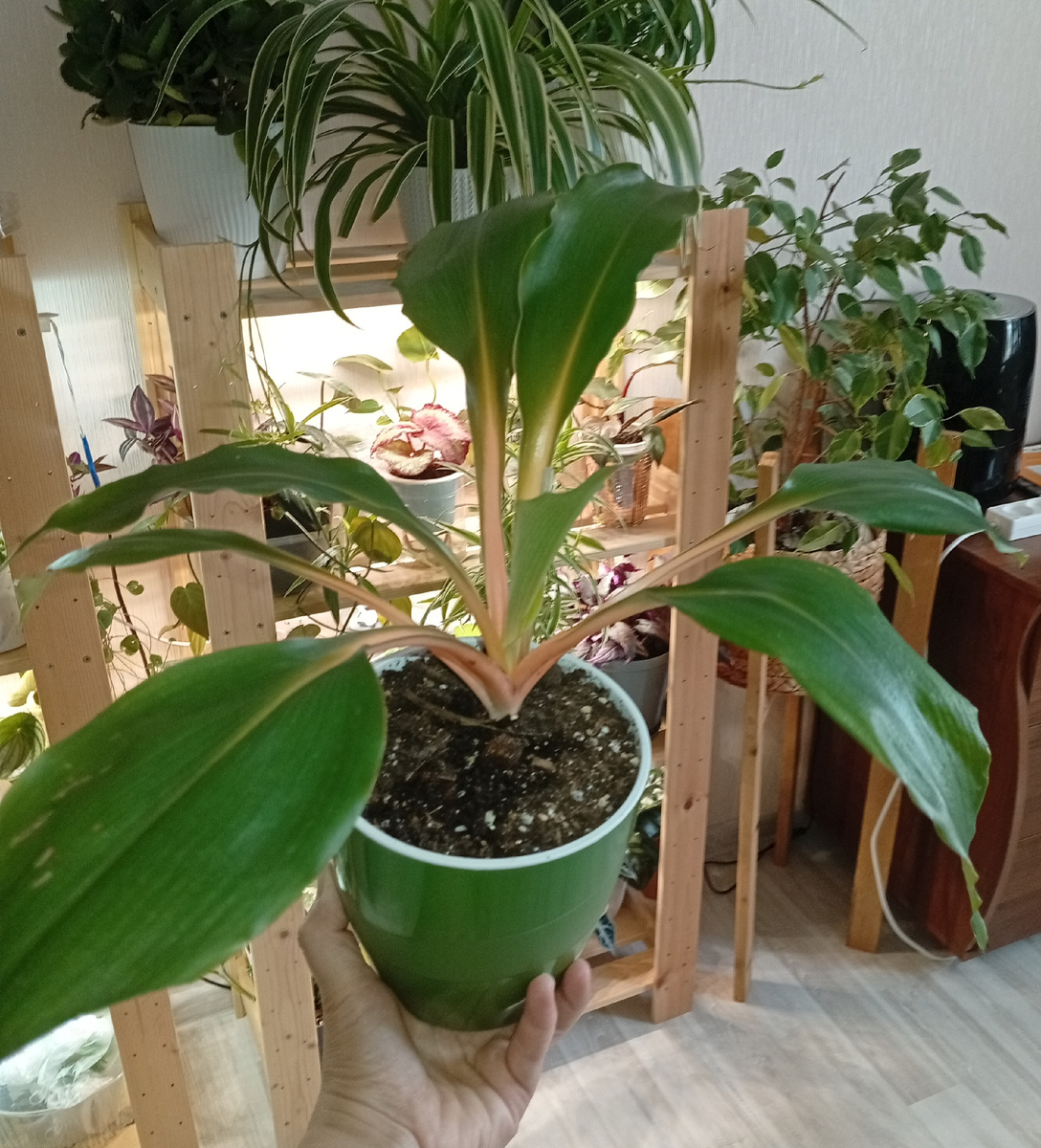 Всем привет 👋 По сложившейся традиции в начале месяца я хочу поделиться с вами своими последними цветочными покупками. В июле я приобрела несколько прекрасных растений, которые скоро займут почётное место в моём доме. Хлорофитум «Грин Оранж» Это растение уже давно привлекло моё внимание своей необычной окраской листьев. Я планирую разместить его на восточном подоконнике, чтобы он получал достаточно света. Покупала я его в хозяйственном магазине рядом с домом за 500 рублей еще в начале месяца, так что, как говорится: «Добро пожаловать в семью» ☺ Единственное, мне кажется, он «жидковат». Надеюсь,что новые розетки будут активно формироваться у основания материнского куста. Ктенанта «Лубберса» Ктенанта — настоящее украшение для моего подоконника. У нее листья светло-зелёного цвета, на них есть золотисто-жёлтые полоски или длинные пятна неправильной формы. Я уже подготовила для неё подходящее место. Растить решила при помощи фитильного полива. Покупала я её в хозяйственном магазине ря