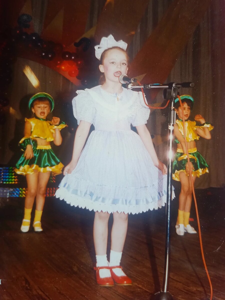💫Еще одно мое увлечение детства, как вы думаю могли заметить, - это музыка и пение. Пела я так же как и танцевала с раннего возраста. Самый счастливый момент, пожалуй, из моего детства-это, когда из одного детского сада меня перевели в другой, с бОльшим акцентом на музыку и творчество, где я встретила своего любимого педагога по музыке Любовь Петровну. С этого момента счастья моему не было предела. Я с огромным энтузиазмом пела, танцевала, участвовала во всех мероприятиях, постановках, меня ставили ведущей на утренниках и детских сказках, солисткой на детском городском конкурсе песен и часто приводили в пример. Петь я, действительно, очень любила. У меня нет музыкального образования. Лишь 2,5 месяца я занималась вокалом уже во взрослом возрасте в Москве, хоть и с невероятно талантливым педагогом, но 2,5 месяца- это, конечно же, очень мало. Также, я пробовала петь в русском народном хоре, но тоже совсем немного. Пела я в основном дома в караоке с друзьями или под гитару. Караоке у