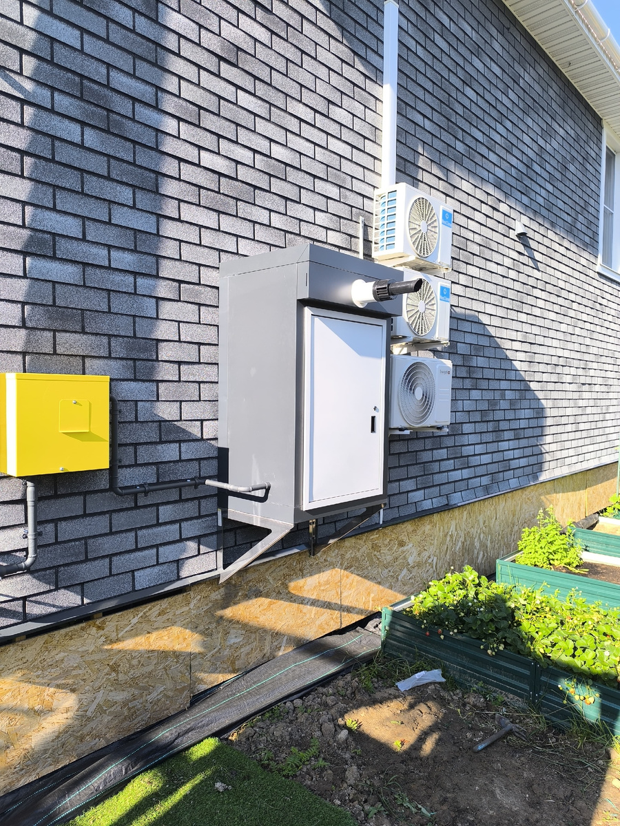 Напомню, что выбор наш пал на пока ещё не стандартный вариант установки котла — мы разместили котёл снаружи. Каждый первый работник, кто сталкивался с нашим запросом, немного удивлялся и покачивал головой. Но хоть не спрашивал: «А что это такое?» — и на том спасибо. Мы, хотя бы, не первые, кто так сделал.