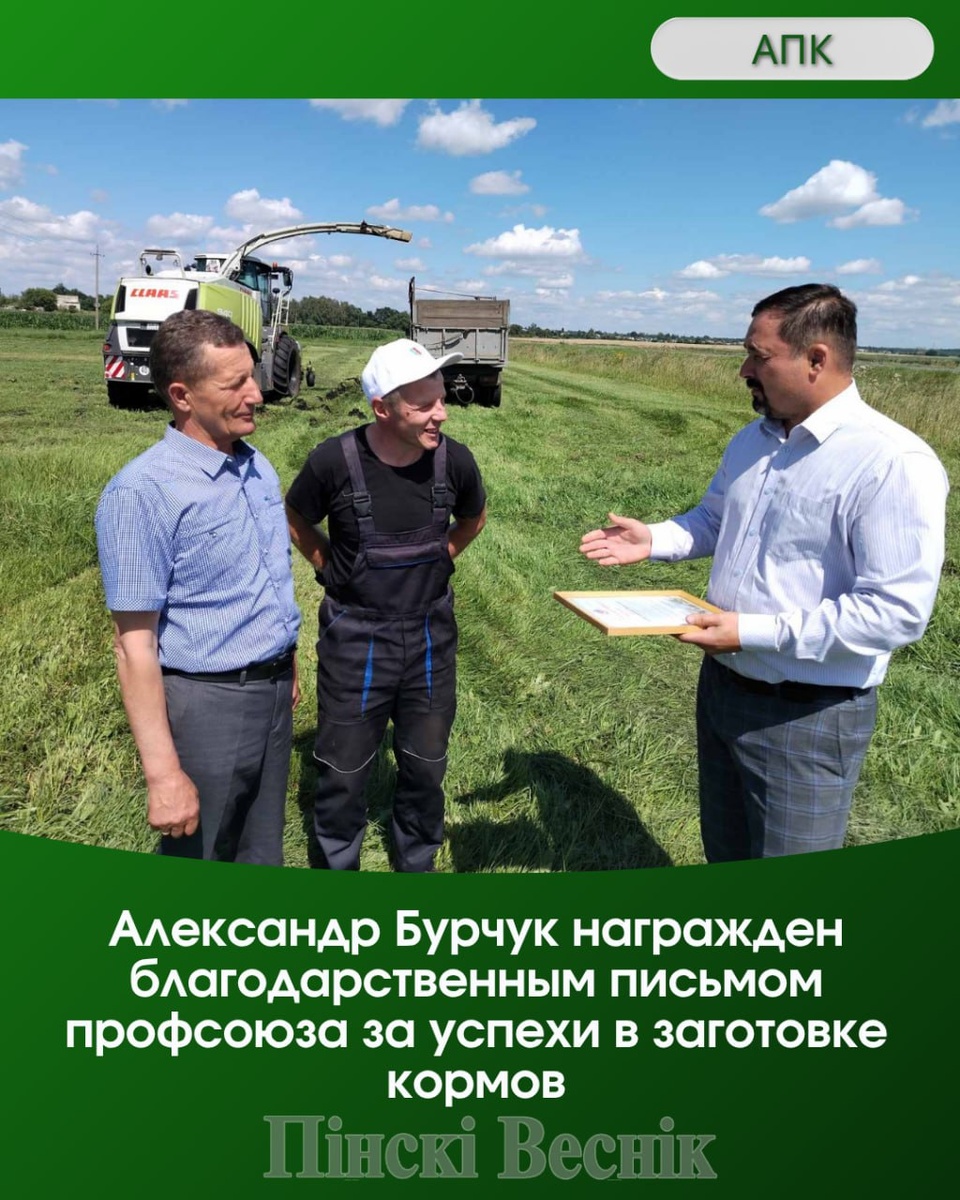 🤍Благодарственное письмо обкома профсоюза работников агропромышленного комплекса за трудовое участие в заготовке кормов 2025 года получил механизатор ОАО «Оснежицкое» Александр Васильевич Бурчук.