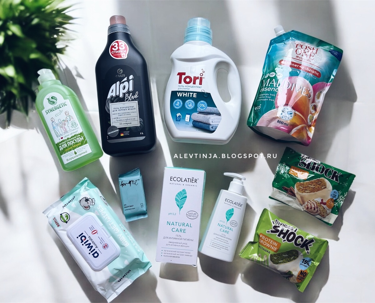 гораздо дешевле, чем на тех же маркеплейсах. Итак, заказала - получила: 💚 Средство для мытья посуды Synergetic антибактериальное, с ароматом яблока Посылку я получила в начале июня, поэтому средством для мытья посуды уже вовсю пользуюсь. Если вдруг ещё не знакомы с ним, то прочитать отзыв можно здесь. 💚 Гель-концентрат для стирки темных вещей Grass Alpi Black gel Мне очень понравился гель для стирки белого белья (буквально вчера упоминала его в посте про пустые банки), поэтому без тени сомнения купила его братца для тёмных вещей. Пока стоит в запасах. 💚 Гель для стирки Tori White А для белых вещей взяла вот такой вариант. Уже использую, нравится. 💚 Кондиционер для белья PoshOne Maldives Essence Мальдивы, которые доступны всем. Кстати, неплохо так пахнет кондицио