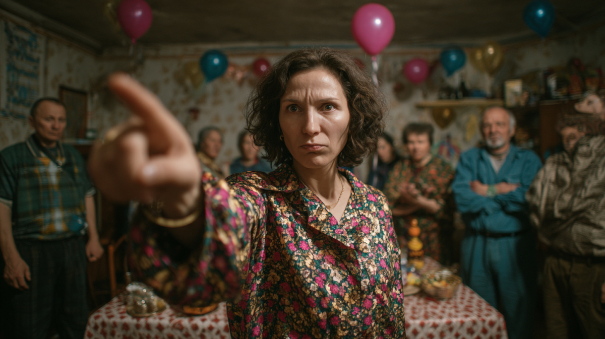 Родственники столпились вокруг, не понимая, как реагировать на скандал. Михаил выглядел растерянным, переводя взгляд с жены на мать.