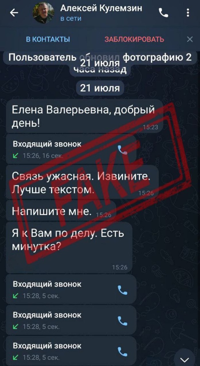 В Telegram обнаружено несколько фейковых аккаунтов, с которых поступают звонки и ведётся переписка с жителями от моего имени, пишет Алексей Кулемзин.