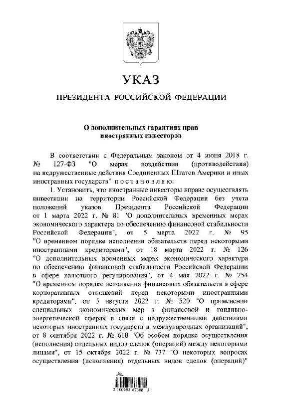 🇷🇺 ЦБ СНЯЛ ОГРАНИЧЕНИЯ НА ПОКУПКУ НА ВНУТРЕННЕМ РЫНКЕ ИНОСТРАННОЙ ВАЛЮТЫ ДЛЯ ИНВЕСТИРУЮЩИХ ПО НОВЫМ ПРАВИЛАМ ЗАРУБЕЖНЫХ ИНВЕСТОРОВ НЕДРУЖЕСТВЕННЫХ СТРАН