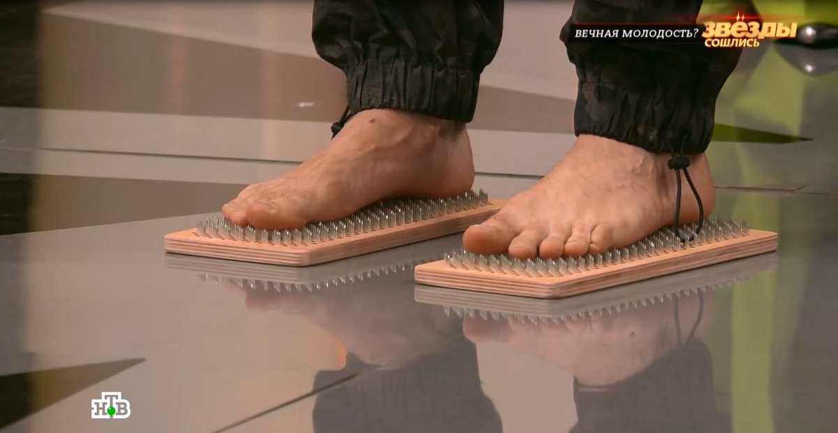«Первые минут пять достаточно сильно больно»: сеанс гвоздестояния в студии программы «Звезды сошлись». Солистка группы «Тутси», которая делает эту практику уже 5 лет, призналась, что до сих пор перед каждым сеансом испытывает страх. А рискнувшая попробовать гвоздестояние Ольга Орлова удивилась, что «больнее с них слезать».