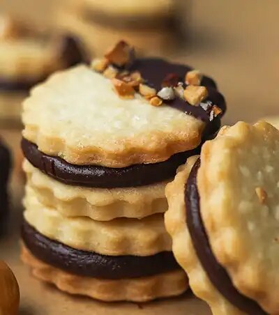 Песочное, маслянистое печенье, покрытое кремом из фундука, шоколада и каймаковой массы. Печенье нежное, восхитительно маслянистое, а с тестом очень приятно работать. Это печенье отличное дополнение ароматного чая или чашечки кофе. Обязательно попробуйте приготовить. Вот рецепт сливочного печенья с шоколадным кремом. Продукты необходимые для приготовления: