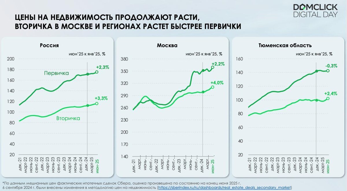 Даже в Тюменской области, где «цены уже всё», — вторичка прибавила +2,4% всего за полгода.