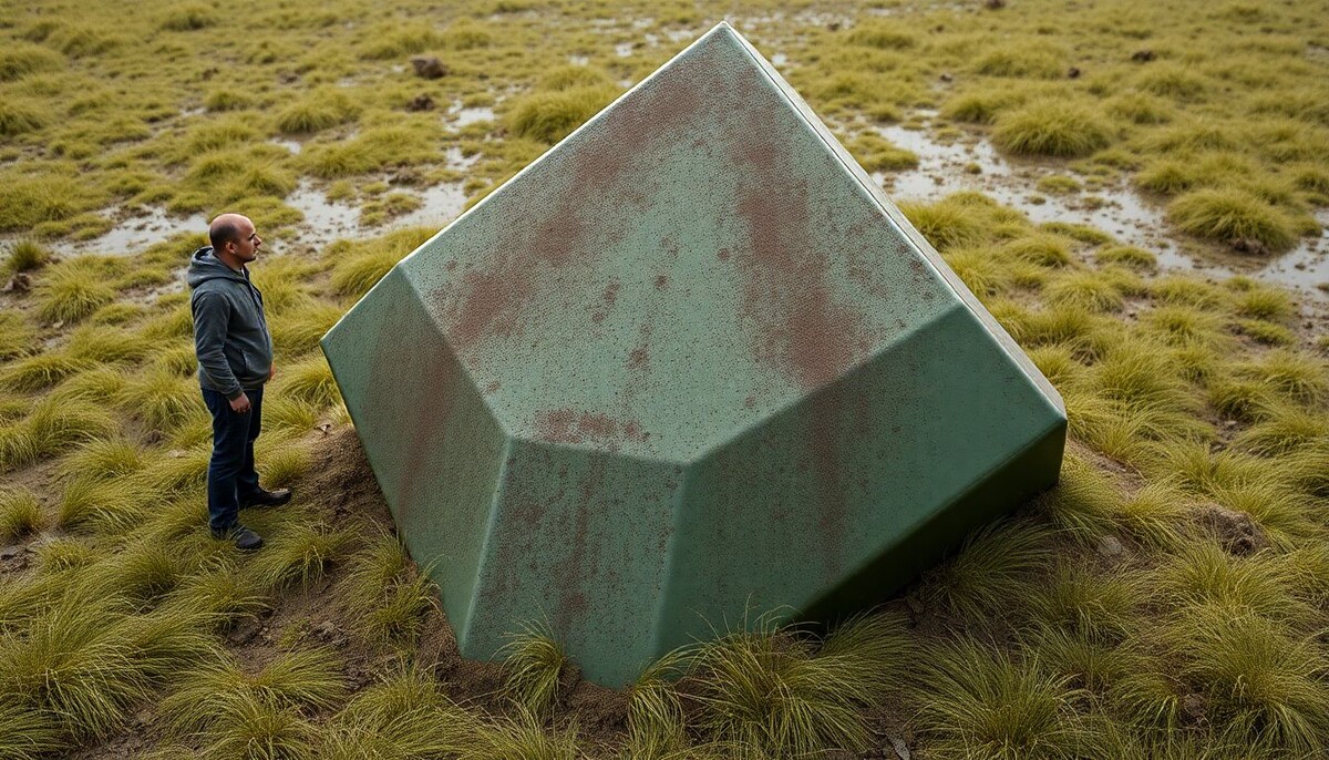 В 1988 году группа ученых проводила исследования в глубинах Северного Урала. Во время очередных поисков разнообразных ископаемых геологи наткнулись на нечто твердое, напоминающее металл. Сначала они не могли поверить своим глазам, но вскоре стало ясно: под землей скрывается нечто огромное и металлическое. Спустя некоторое время на место находки прибыли ученые, полные удивления и восхищения. Они сразу же принялись к раскопкам, и спустя несколько недель ученым удалось откопать странный объект размером с грузовик. Объект имел ромбовидную форму и отличался зеленым цветом металла. На его поверхности не было никаких символов или опознавательных знаков. Наиболее загадочной частью этого объекта была треугольная выемка, напоминающая вход. Ученые пытались понять, как открыть этот загадочный аппарат, но чем быстрее они двигались, тем больше терялись в догадках: каких-либо ручек или кнопок не было. Тогда сделали попытки распилить металл, но все усилия оказались напрасными: объект не поддавался деф