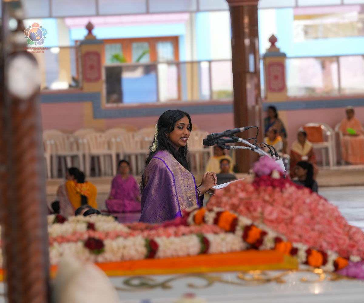 ✨Насладитесь Божественной атмосферой Прашанти Нилаям Новости Прашанти "Логово под потолком". Театрализованное представления от молодёжи из стран зоны 6 — Европа и Великобритания. 31 июля 2025 г. В рамках паломничества преданных из зоны 6 (Европа и Великобритания) 31 июля 2025 года в зале Саи Кульвант Холл в Прашанти Нилаям молодые люди представили заставляющую задуматься театрализованную постановку под названием "Логово под потолком". Программа началась с воспевания Вед, задавая священный тон всему вечеру. Затем выступила г-жа Лакши Ишваракумар, координатор по работе с молодёжью, которая отметила, как им всем повезло быть частью Саи сообщества, где глубоко укоренены принципы веры, служения и единства. Она также представила инициативу "Момент с Саи"— коллекцию проникновенных видеопосланий от преданных всех возрастов, в которых они делятся самыми дорогими сердцу моментами своей жизни с Бхагаваном. Вдохновившись посланием Бхагавана "Потолок желаний', молодые люди представили прони