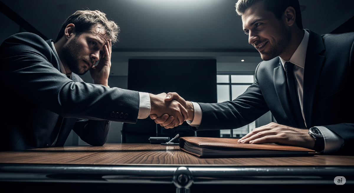 Я сидел за столом, пытаясь свести дебет с кредитом, но цифры упорно не хотели сходиться. Не сходились уже третий месяц. За окном шел холодный, осенний дождь, а внутри меня было ещё тоскливее. Единственным тёплым пятном в этой серости был светящийся экран моего телефона, на котором высветился пропущенный звонок. Номер был незнакомый. Я набрал его. На том конце провода раздался мягкий, бархатный мужской голос. "Здравствуйте, Олег. Меня зовут Виктор Павлович. Мне вас порекомендовали как человека, который не боится рисковать." Я усмехнулся. "Рисковать? Я сейчас боюсь даже выйти за хлебом, потому что знаю, что не смогу его купить." Виктор Павлович рассмеялся. Звук его смеха был таким же бархатным, как и его голос. "Я знаю ваше финансовое положение, Олег. И я знаю, как его исправить. Я предлагаю вам сделку, которая навсегда закроет все ваши долги." "Какую сделку?" — спросил я, и в моей интонации уже слышался скепсис. "Сделку, в которой вам придётся... кое-что потерять. Но взамен вы получите