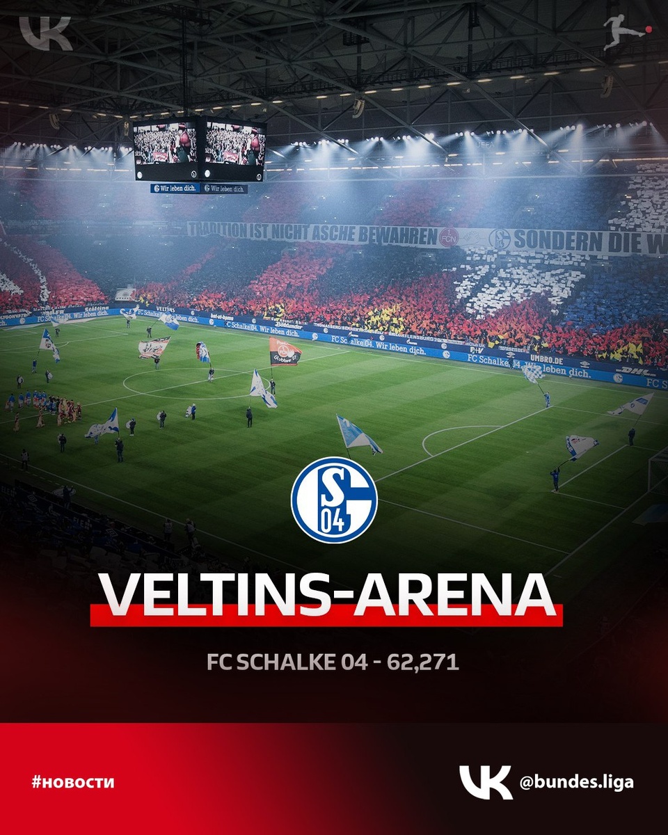 #2Бундеслига 2 место 🇩🇪 «Фельтинс-Арена», также известна как «Арена АуфШальке» - стадион в немецком городе Гельзенкирхен, домашняя арена футбольного клуба «Шальке 04». Вместимость - 62 271 человек. Открыт в 2001 году.