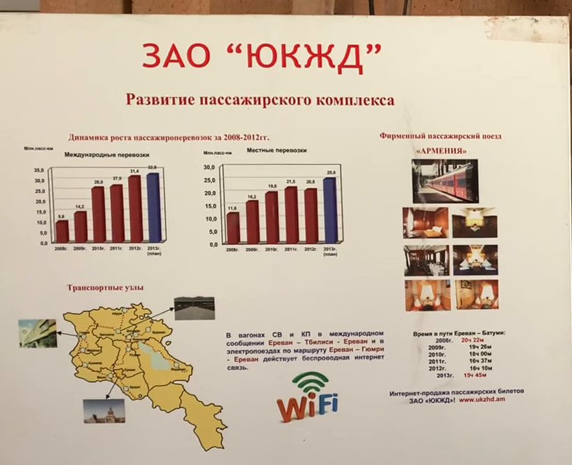 Да, это не совсем РЖД, а её дочка (Южно-Кавказская железная дорога), но до 2008 году в стране вообще-то была своя система – АрмЖД. Как так вышло? После распада СССР, начала Карабахской войны и сепаратизма в регионах Грузии, ЖД система Армении оказалась изолированной. В 1992 году в Ереван пришёл последний поезд из Москвы. Общее состояние экономики и инфраструктура уже в 2000-ые потребовали серьёзных инвестиций. Их пообещали из России. Так в 2008 году было подписано соглашение о передачи АрмЖД под контроль РЖД. В компанию перешли 4300 сотрудников, весь подвижной состав и инфраструктура. Да, фактичекски всё. По контракту РЖД обязались модернизировать пути, заменить вагоны, а также построить новые объекты и расширить маршруты. К примеру, с 1989 года висел проект соединить ЖД сеть в кольцо через Ванадзор. Но новые линии так и не появились, и даже наоборот: до Дилижана и Иджевана поезда не ездят аж с 90-ых. И хоть поезда правда обновили, саму ЮКЖД обвиняют в финансовых махинациях на десятки